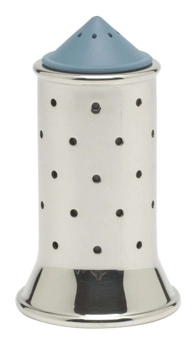 De door Michael Graves ontworpen zoutstrooier van Alessi is gemaakt van roestvrij staal en heeft een blauwe kunststof top. Het zoutvaatje heeft een diameter van 4,5 cm en is 11,5 cm hoog.