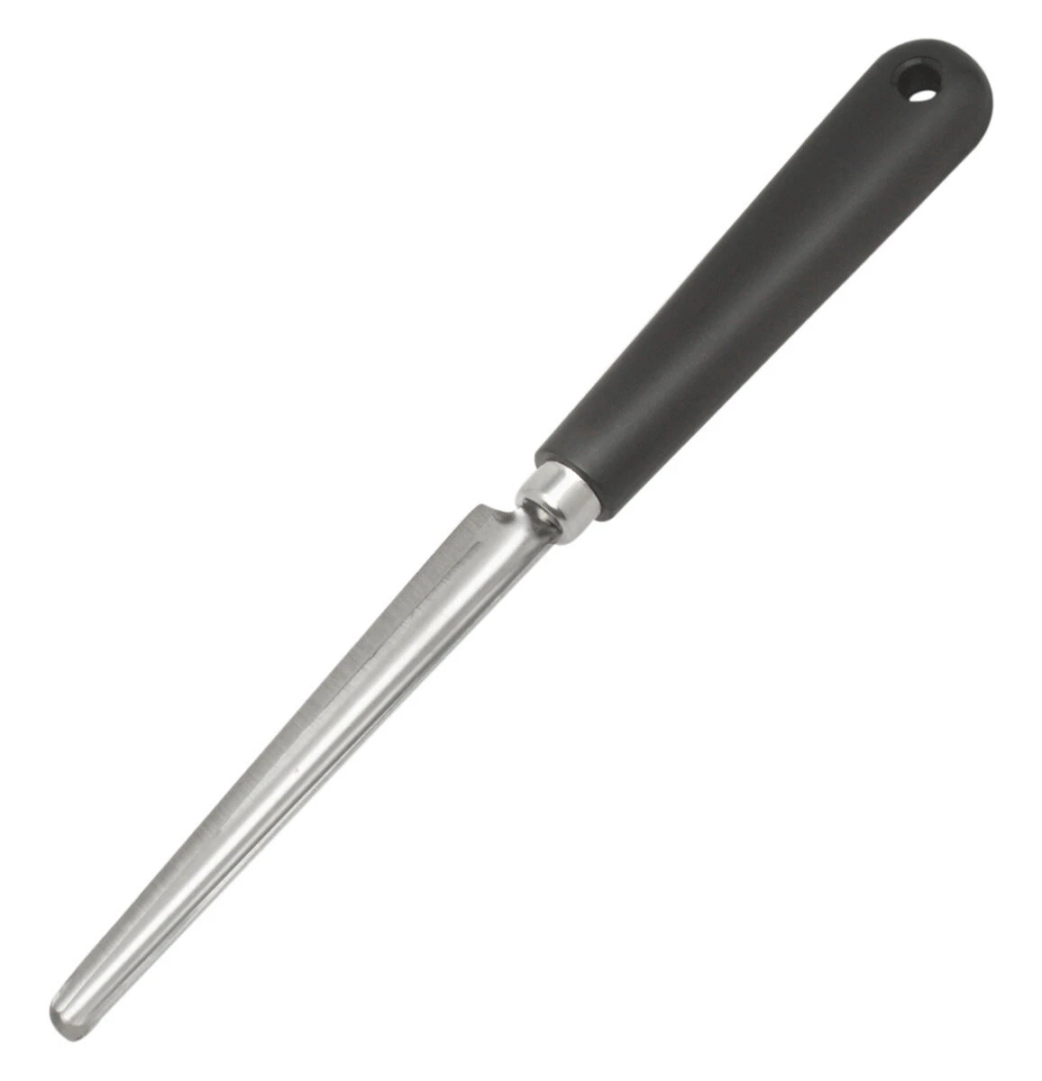 De Deglon courgetteschraper is vervaardigd uit roestvrij staal met een kunststof handgreep. De schraper heeft een lengte van 10,5 cm en is inclusief de handgreep 22 cm lang. Gebruik voor het verwijderen van vruchtvlees uit een courgette.