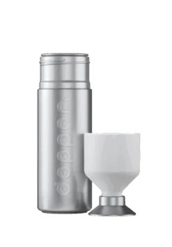 De Dopper drinkfles bestaat uit 3 onderdelen. De matte, witte fles, de witte top en een dop. U kunt op 2 verschillende manieren uit de waterfles drinken: door de hele top van de Dopper af te draaien en te gebruiken als glaasje of door de enkel de dop af te nemen en direct uit de Dopper te drinken.