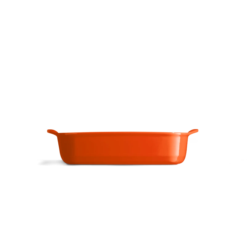 Met de oranje Emile Henry ovenschaal serveert u zeer gemakkelijk de heerlijkste traditionele ovengerechten. De ovenschaal is 29,5 cm lang, 19 cm breed en 6,5 cm hoog. De binnenmaat van de ovenschaal is 21,5 cm x 15 cm x 5,5 cm. Voor het bereiden van bijvoorbeeld ovenschotels voor ongeveer 2 personen. De schaal is vervaardigd van non-poreus, geglazuurd aardewerk en geschikt voor gebruik in de oven, vriezer en magnetron. Gebruik de Emile Henry ovenschaal voor het verwarmen of grillen van verschillende soorten ovengerechten.