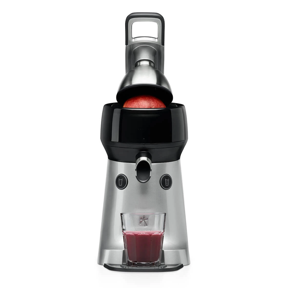 Met de Juicer citruspers van Espressions geniet u dagelijks van een glas heerlijk, vers sap. Met een simpele druk op de knop kiest u voor een heldere drank of sap vol vruchtvlees. De pers slaat automatisch aan of uit wanneer u de pershendel overhaalt. De krachtige perskop perst moeiteloos grote en kleine citrusvruchten en zelfs granaatappels. Zonder dat u hier zelf al te veel kracht voor moet zetten: terwijl de geur van vers fruit u tegemoet komt doet de pers al het werk.