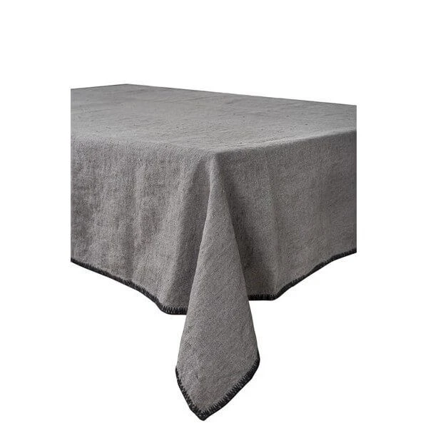 Haal het luxe gevoel in huis met het Letia-tafelkleed van Haomy! Het linnen design heeft een afmeting van 170 x 300 cm en heeft een granietgrijze kleur. Het tafelkleed is voorzien van een effen patroon en is voorzien van een zwarte bies voor een speels accent. Breid uw collectie uit en combineer het Letia tafelkleed met de andere Letia-producten van Haomy. Gebruik het tafelkleed als bescherming en/of versiering van uw eettafel.