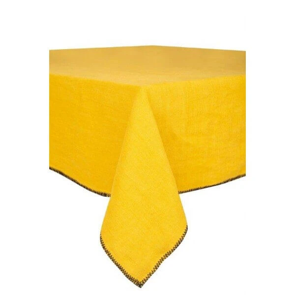 Haal het luxe gevoel in huis met het Letia-tafelkleed van Haomy! Het linnen design heeft een afmeting van 170 x 300 cm en heeft een saffraangele kleur. Het tafelkleed is voorzien van een effen patroon en is voorzien van een zwarte bies voor een speels accent. Breid uw collectie uit en combineer het Letia tafelkleed met de andere Letia-producten van Haomy. Gebruik het tafelkleed als bescherming en/of versiering van uw eettafel.