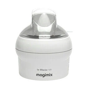 Met de Magimix Le Glacier ijsmachine maakt u zelf eenvoudig room- en sorbetijs. De machine heeft een behuizing van wit kunststof en een ijsemmer van roestvrij staal, met een inhoud van 1,1 liter. Plaats deze emmer 12 uur voor gebruik rechtop in uw diepvries. Met een vermogen van 15 W produceert u in 20-30 minuten ijs.