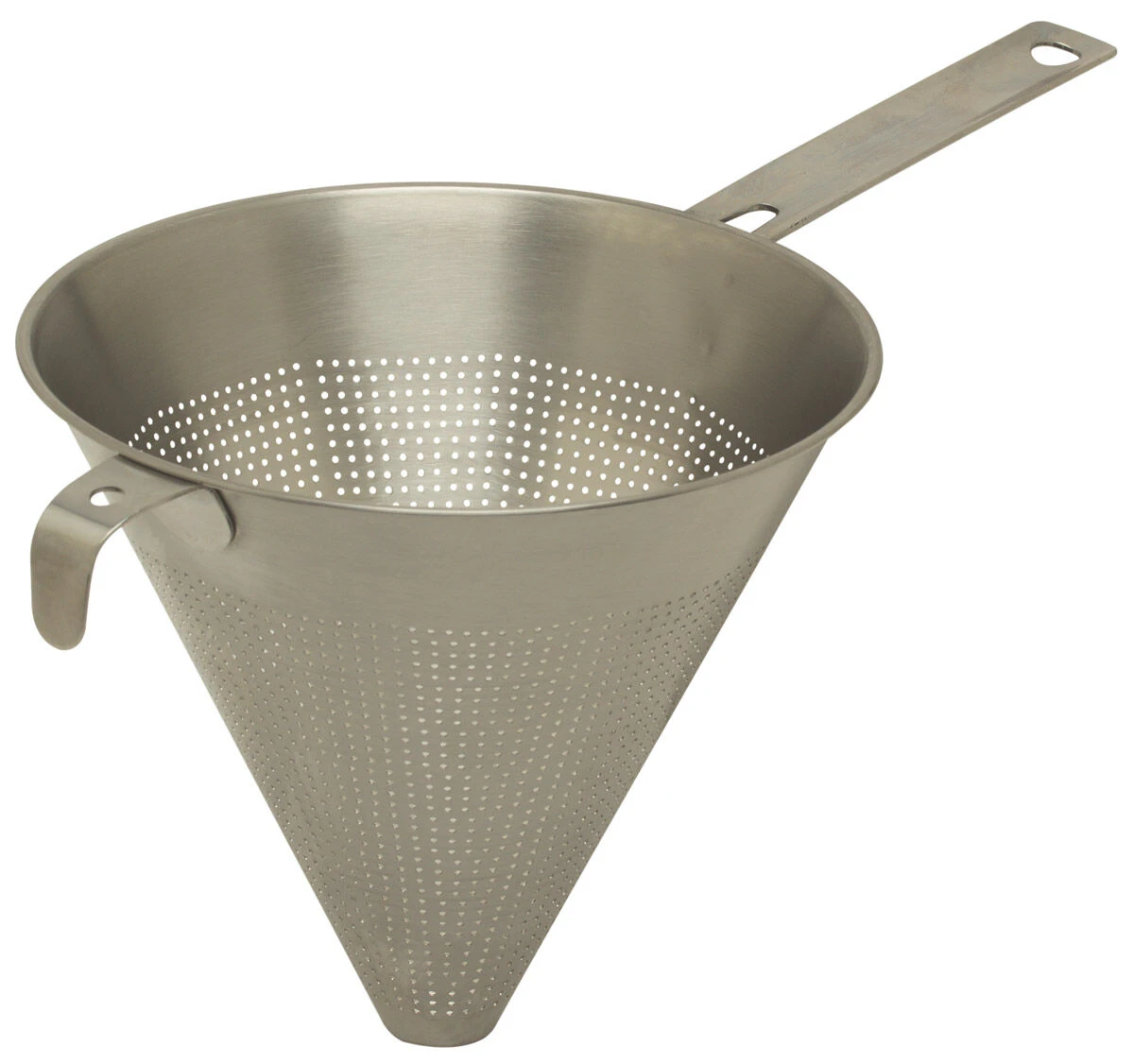 De Oldenhof Chinois, ofwel puntzeef is gemaakt van roestvrij staal en extra stevig voor het passeren van bouillons, soepen en sauzen.