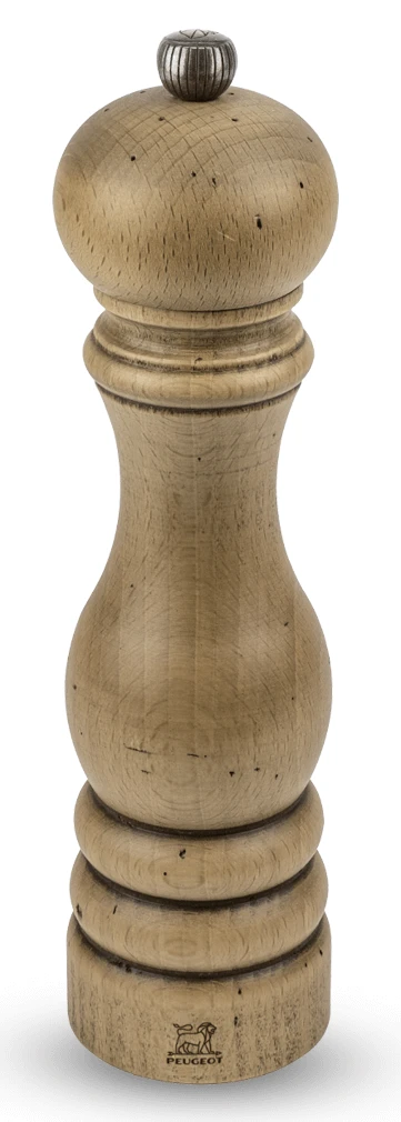 De Peugeot Paris Antique zoutmolen heeft het klassieke Peugeot model, is uitgevoerd in beukenhout dat een antiek-afwerking heeft gekregen, en heeft een hoogte van 22 cm. Het maalwerk in de molen is vervaardigd uit roestvrij staal. Op de metalen draaiknop bovenop bevindt zich de het logo van Peugeot.