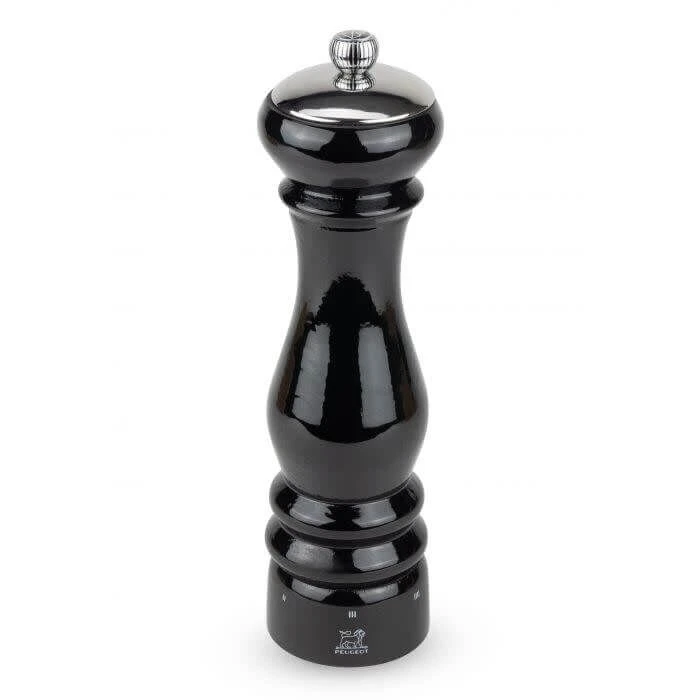 De Peugeot Paris Icône Noir zoutmolen heeft het klassieke Peugeot model dat is herzien. De molen is gemaakt van zwart gelakt beukenhout. Aan de bovenzijde heeft de molen een roestvrijstalen kap. Hierdoor krijg de 22 cm hoge molen een moderne uitstraling. Het maalwerk in de molen is vervaardigd uit roestvrij staal. De molen is voorzien van u-select, waarmee u de grofheid van het zout traploos kunt instellen. Op de metalen draaiknop bovenop bevindt zich de het logo van Peugeot.