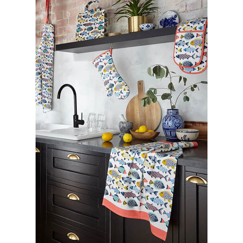 De oranje Aquarium ovenwant van Ulster Weavers is vervaardigd van katoen en voorzien van een polyester vulling voor isolatie en bescherming. Gebruik de ovenwant om hete pannen van het fornuis of uit de oven te pakken. De ovenwant is 37 cm lang en 20 cm breed.