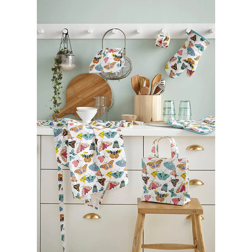 De kleurige lange pannenlap van Ulster Weavers is vervaardigd van katoen en voorzien van een polyester vulling voor isolatie en bescherming. De pannenlap is vormgegeven met een vrolijke Butterfly House print, een handig ophangoog en twee brede steekvakken. Gebruik de pannenlap om hete pannen van het fornuis of uit de oven te pakken. De pannenlap is 88 cm lang en 18 cm breed.