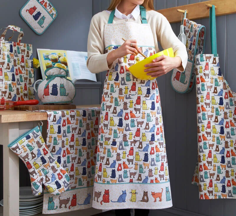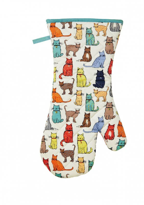 De Catwalk ovenwant van Ulster Weavers is vervaardigd van katoen en voorzien van een polyester vulling voor isolatie. Gebruik de ovenwant om hete pannen van het fornuis of uit de oven te pakken. De ovenwant is voorzien van een afbeeldingen van katten op een beige ondergrond. De ovenwant is 37 cm lang en 20 cm breed.