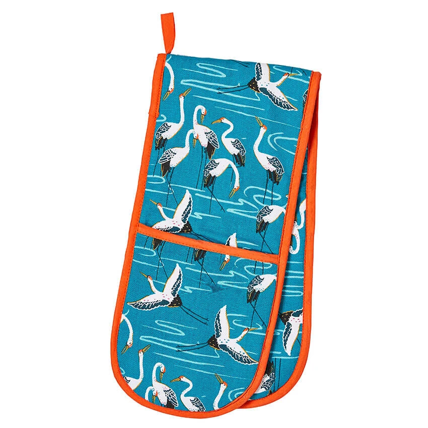 De blauwe lange pannenlap van Ulster Weavers is vervaardigd van katoen en voorzien van een polyester vulling voor isolatie en bescherming. De pannenlap is vormgegeven met een vrolijke Cranes print, een handig ophangoog en twee brede steekvakken. Gebruik de pannenlap om hete pannen van het fornuis of uit de oven te pakken. De pannenlap is 88 cm lang en 18 cm breed.