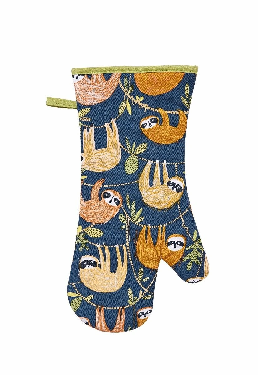 De Hanging Around ovenwant van Ulster Weavers is vervaardigd van katoen en voorzien van een polyester vulling voor isolatie. Gebruik de ovenwant om hete pannen van het fornuis of uit de oven te pakken. De ovenwant is voorzien van een afbeeldingen van luiaards op een blauwe ondergrond. De ovenwant is 37 cm lang en 20 cm breed.