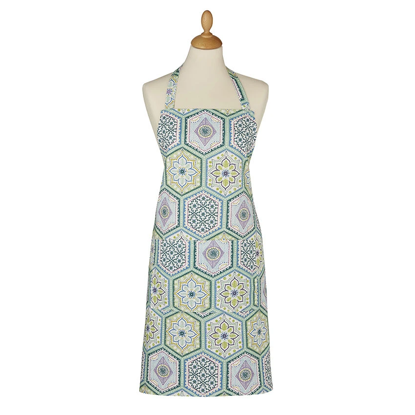 Het groene Ulster Weavers Lisbon Tiles schort is gemaakt van katoen. Gebruik het schort om uw kleding tegen spetters en vlekken te beschermen. Aan de voorzijde is het schort voorzien van een tegeltjesprint. Het schort is ontworpen met een verstelbare nekband en praktisch voorvak.Het schort is 95 cm lang en 70 cm breed