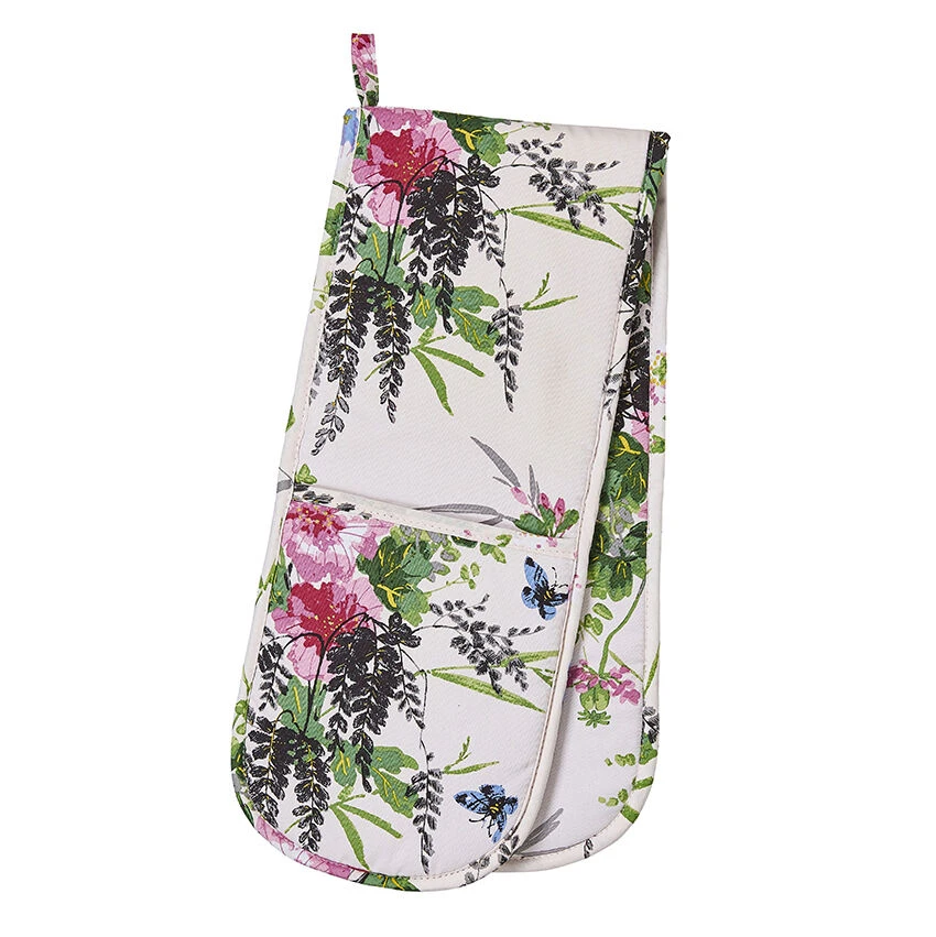 De groene lange pannenlap van Ulster Weavers is vervaardigd van katoen en voorzien van een polyester vulling voor isolatie en bescherming. De pannenlap is vormgegeven met een vrolijke Madame Butterfly print, een handig ophangoog en twee brede steekvakken. Gebruik de pannenlap om hete pannen van het fornuis of uit de oven te pakken. De pannenlap is 88 cm lang en 18 cm breed.