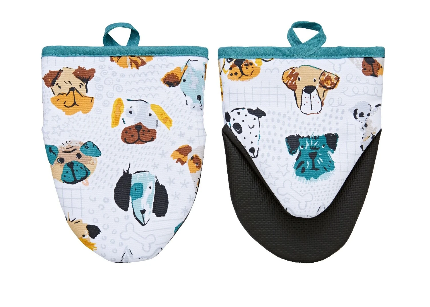De blauwe Mutley Crew ovenwanten set is perfect voor het hanteren van hete potten en schalen tot 100 graden Celsius. De handpalmen van neopreen beschermen tegen stoom en heet water en helpen uw vingers veilig te houden bij het hanteren van uw nieuwste culinaire meesterwerk. Het design van de ovenwanten is geïnspireerd op de vele verschillende hondensoorten die er zijn.