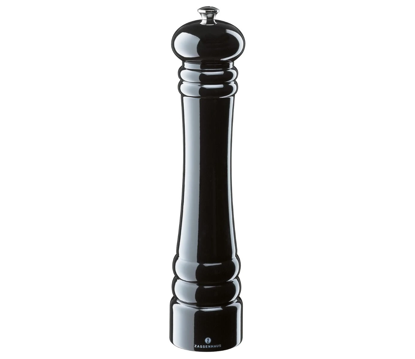 De Zassenhaus Berlin pepermolen glanzend zwart heeft een klassiek uiterlijk. De pepermolen is glanzend zwart gelakt en heeft een keramisch maalwerk. De pepermolen van Zassenhaus is 30 cm hoog, en heeft een diameter van 6,6 cm.