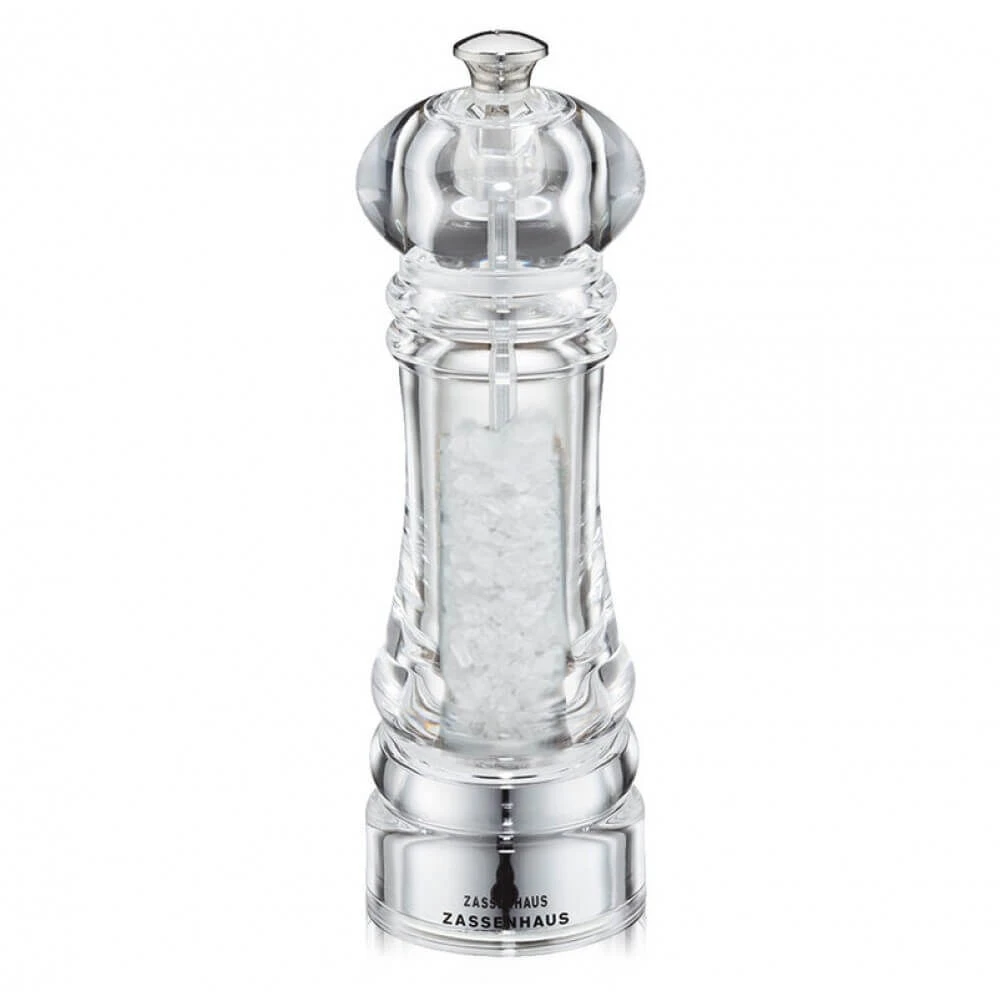 De Zassenhaus Berlin zoutmolen heeft een klassiek uiterlijk. De zoutmolen is vervaardigd uit transparant acryl en heeft een keramisch maalwerk. De zoutmolen van Zassenhaus is 18 cm hoog.